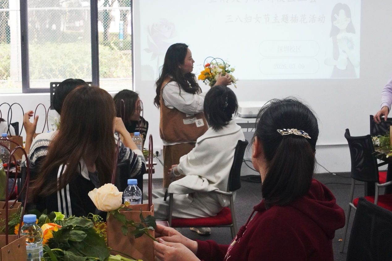 本次活动不仅让女教职工在繁忙的工作之余感受到花艺之美,更传递了校区大家庭的关怀与祝福,进一步增强了女教职工的归属感与幸福感。大家纷纷表示,将带着这份温暖与力量,以更昂扬的姿态、更务实的作风,为校区高质量发展贡献巾帼力量。